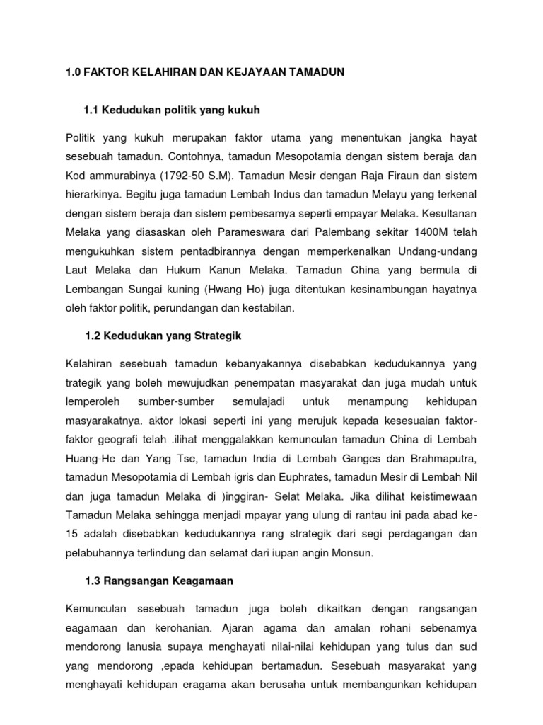 Faktor Kelahiran Dan Kejayaan Tamadun