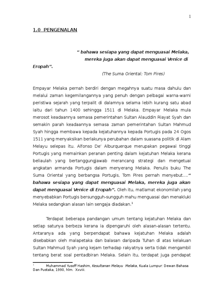 Isi Kandungan Mukasurat 1 Pendahuluan 2 2 Faktor Faktor Yang Menyumbang Kejatuhan Kesultanan Melaka 3 Hingga 6 3 Pengajaran Daripada Daripada Kejatuhan Melaka 7 Hingga 8 Chell Mn Academia Edu