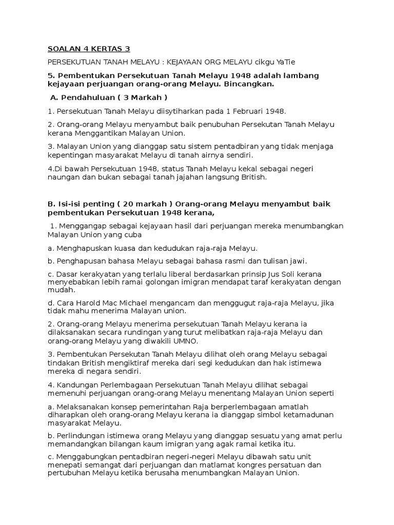 Belajar Sejarah Spm Persekutuan Tanah Melayu 1948