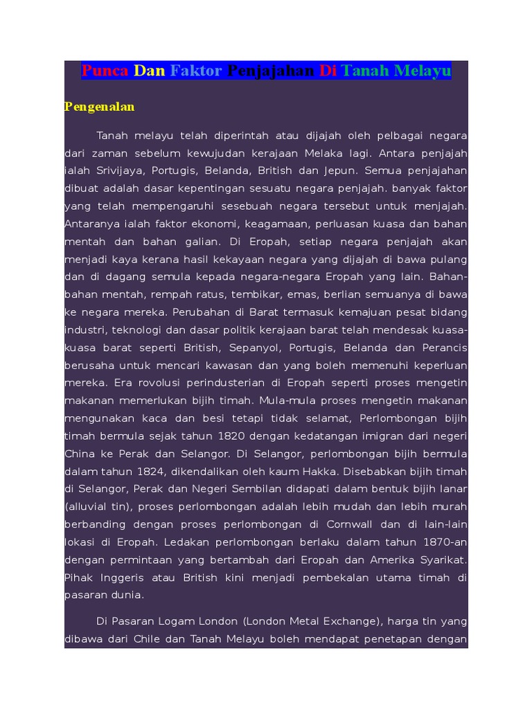 Punca Dan Faktor Penjajahan Di Tanah Melayu
