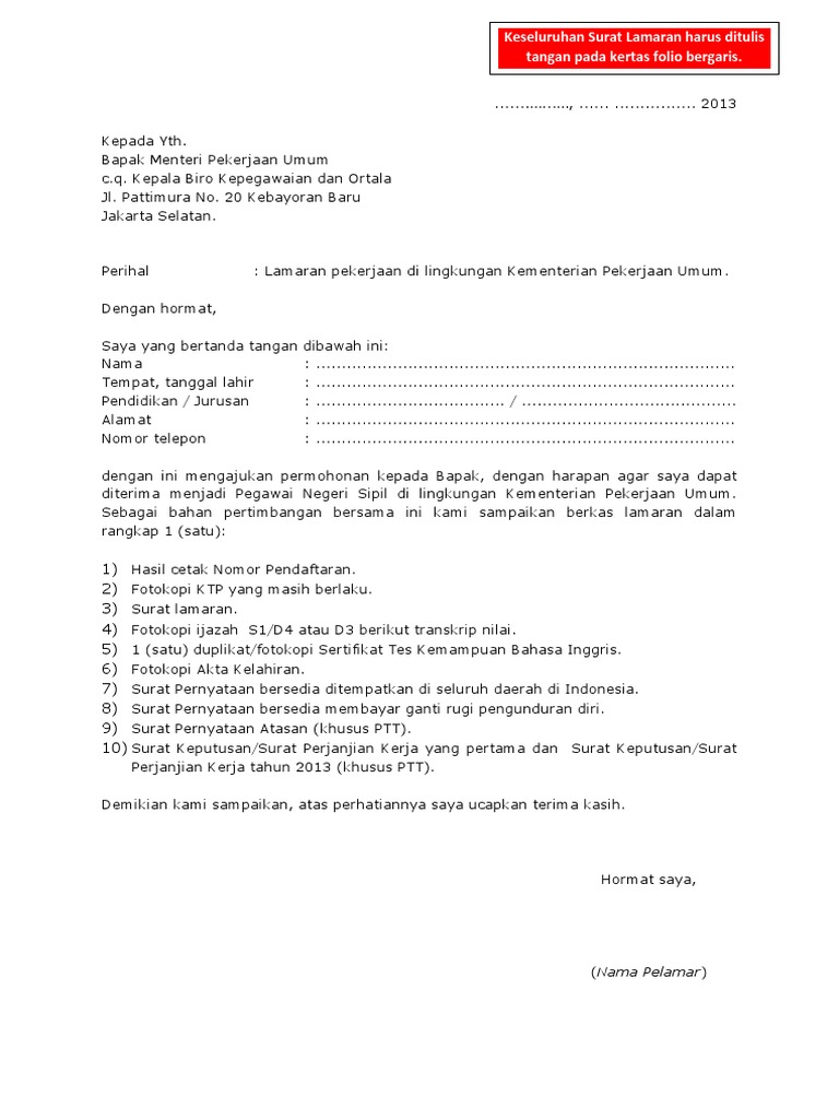 Contoh Penulisan Surat Proposal Contoh Surat Lamaran Kerja Cpns Dan Umum Ditulis Tangan