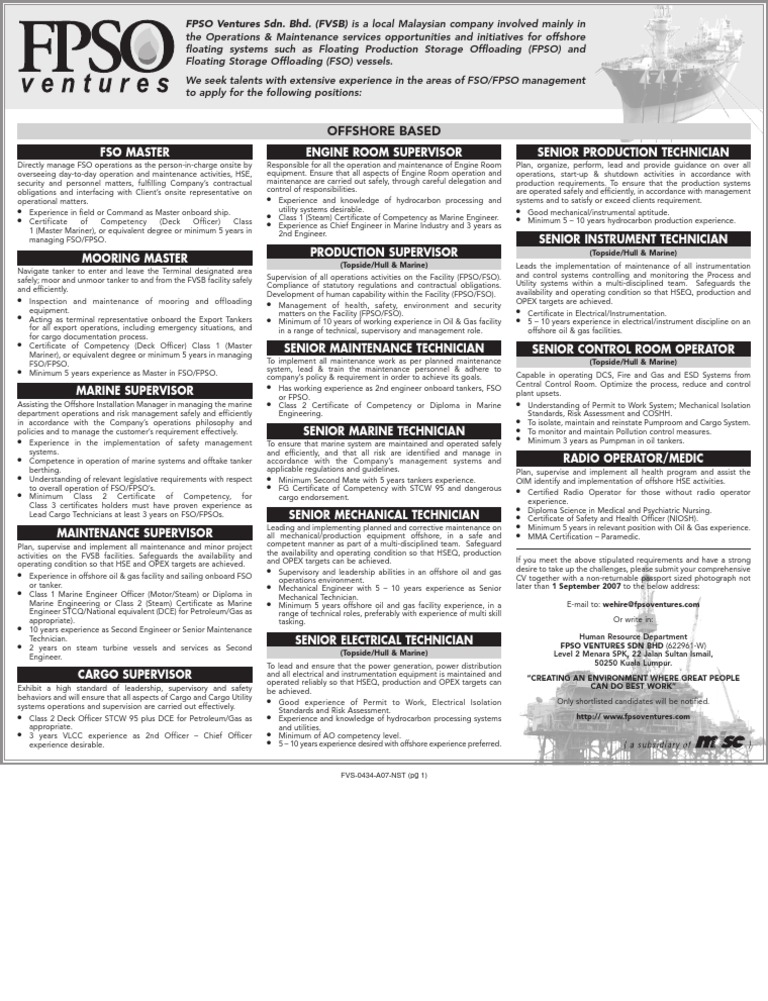 Jobsinmalaysia Info Jobs Vacancy Career Employment Malaysia 2011 Fpso Ventures Jobs Vacancy Career 2011