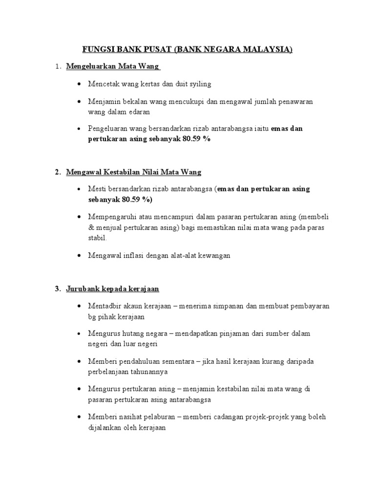 Fungsi Bank Negara Malaysia Ekonomi