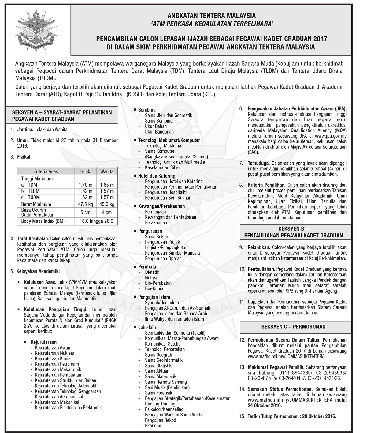 Pengambilan Dan Permohonan Pegawai Kadet Graduan 2017 Atm Hiburan My